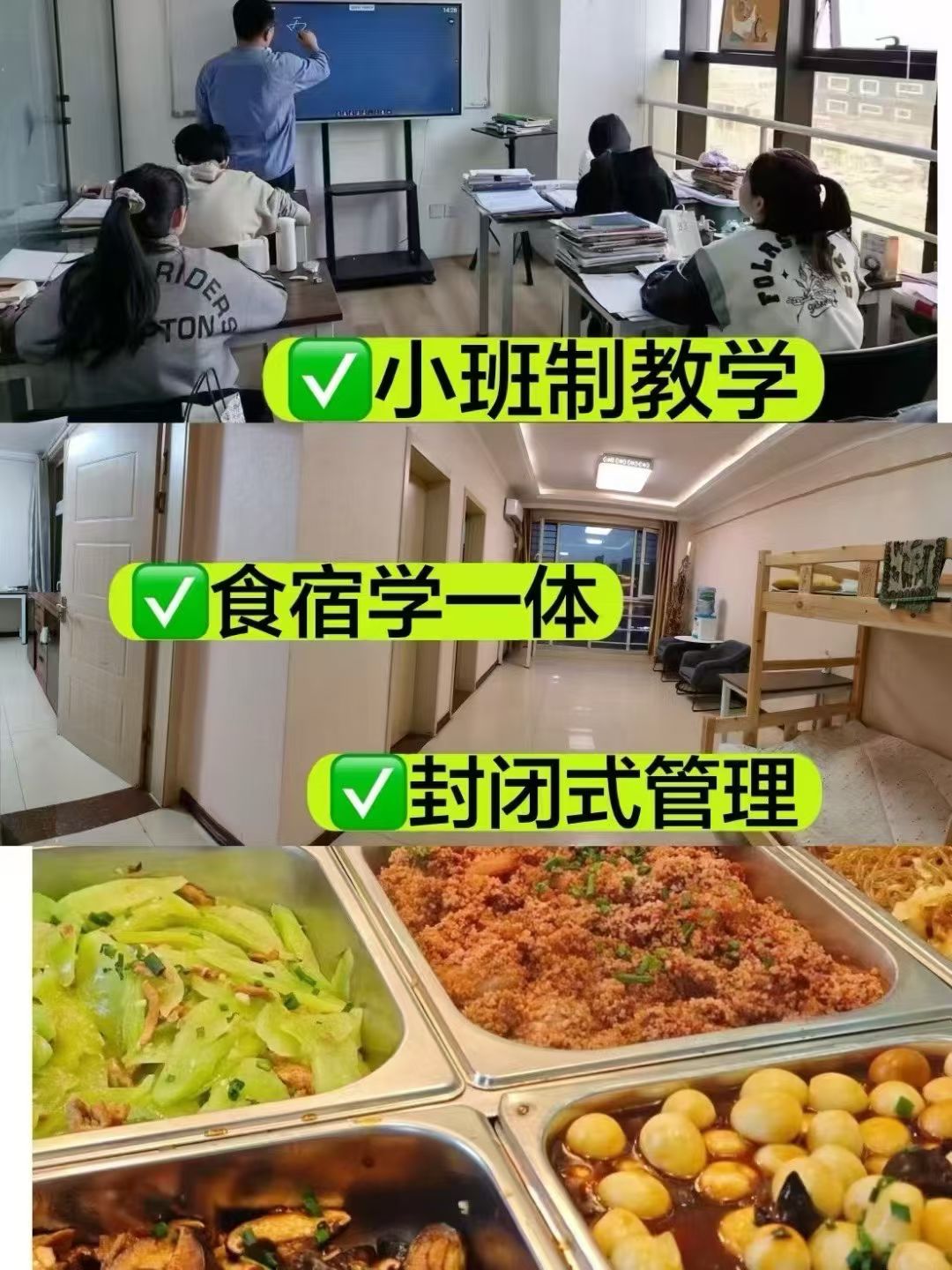 高三全年精品集训小班,食宿学一体,精细化管理