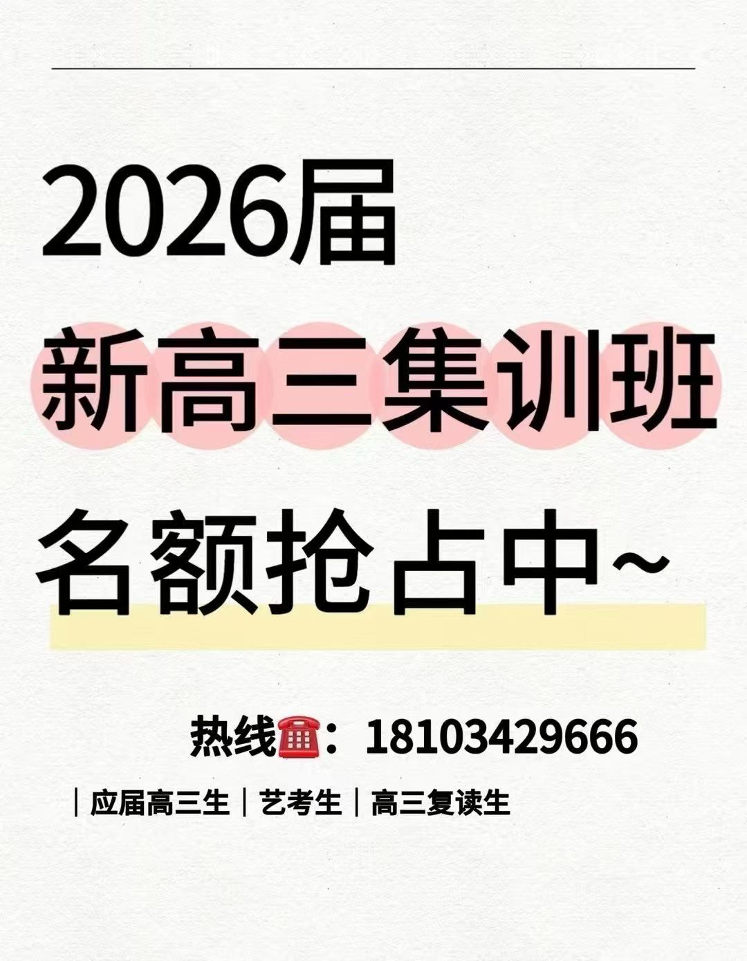 : 高三全年精品集训小班课程,全年招生中!!!报名咨询热线:18103429666背每一个单词,是听深海鲸吟的门票;算每一道数学,是阅异域风光的船票;写每一张卷子,是望璀璨极光的机票。努力,不是为了爱上习题, 而是为 ...